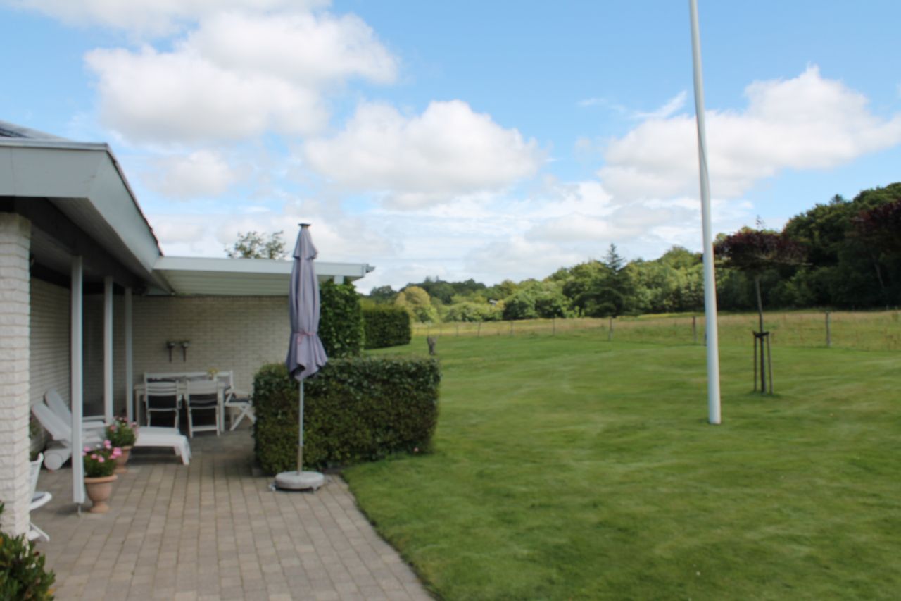 Udenfor venter en velholdt have på at blive udforsket af både børn og voksne. Haven grænser op til Lundby Bakker, hvilket giver direkte adgang til naturoplevelser året rundt – her kan I tage på lange gåture eller cykelture gennem det smukke landskab lige fra jeres egen baghave.